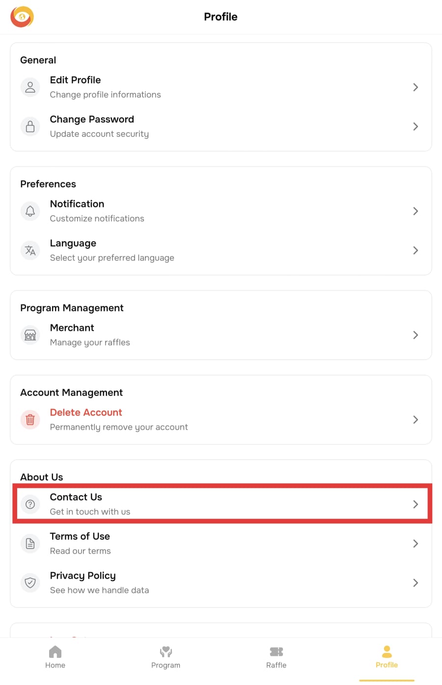 Before creating a raffle, your account must first be activated as a Merchant Admin. Follow the steps below to submit your request.