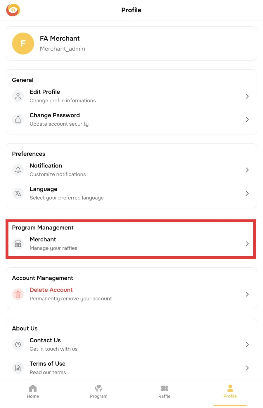 If you are interested in running your own raffle campaign, you must first become a Merchant Admin.