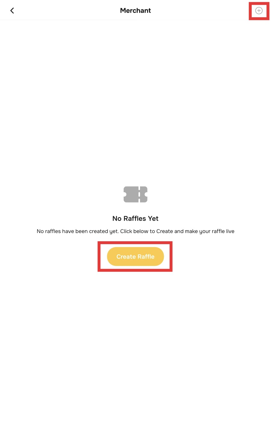 Click Create Raffle or select the plus (+) icon in the top-right corner.