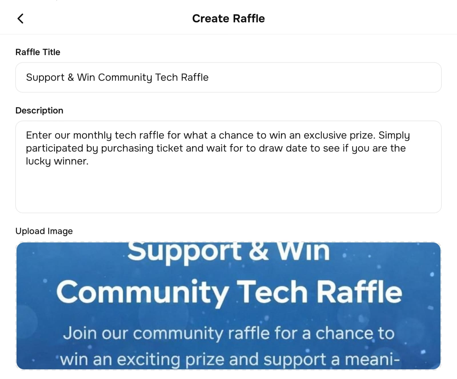 This information represents the main identity of the raffle and will be visible to users participating in the campaign.