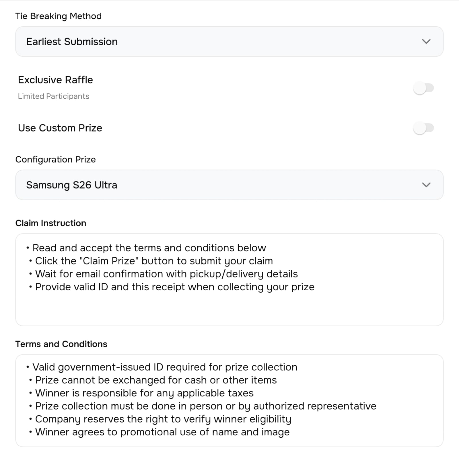 Configure Additional Raffle Settings