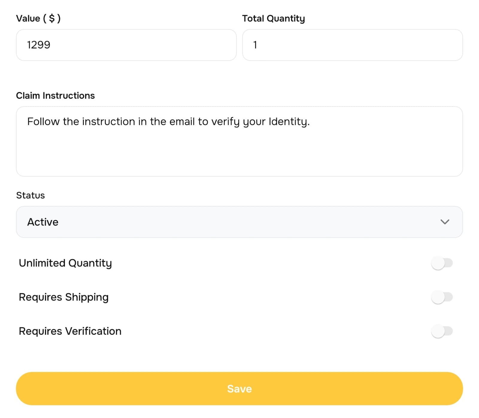 Custom Prize Value